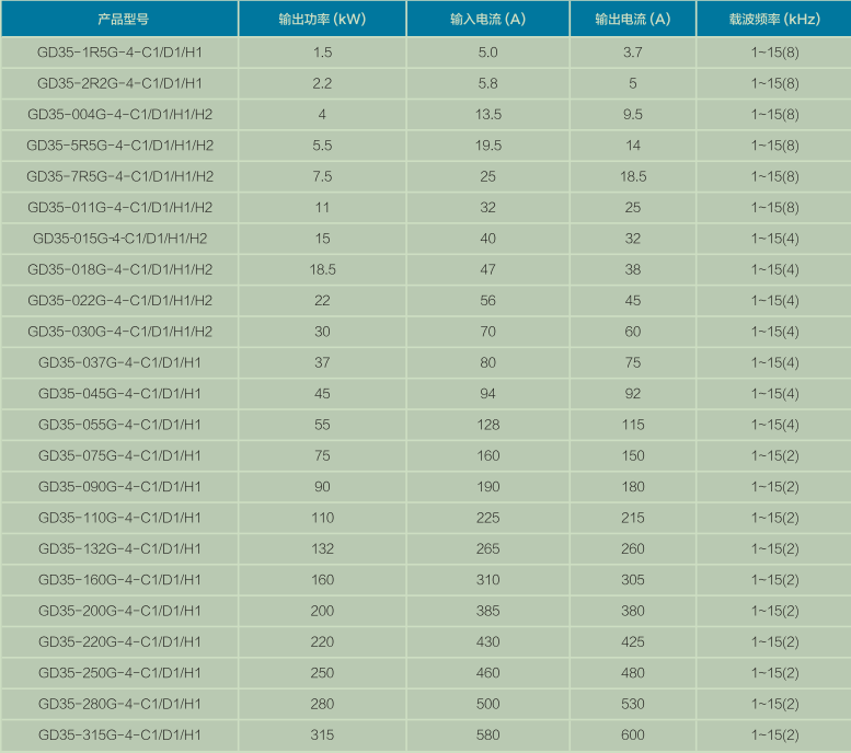 AC 3PH 380V(-15%)~440V(+10%)产品额定值