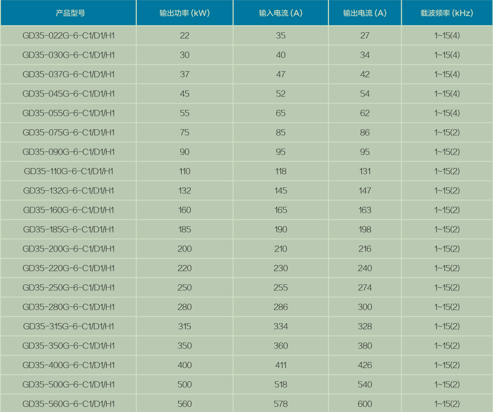 AC 3PH 520V(-15%)~690V(+10%)产品额定值