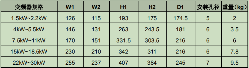 AC 3PH 380V(-15%)~440V(+10%)变频器尺寸图